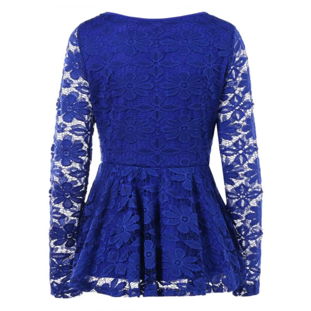 About Long Sleeve Lace Skirted Blouse - Royal Blue Fansmadedirect