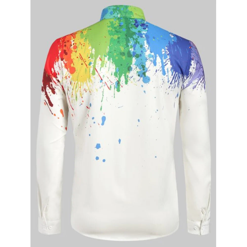 About Long Sleeves Splatter Painting Print Button Shirt - White Fansmadedirect