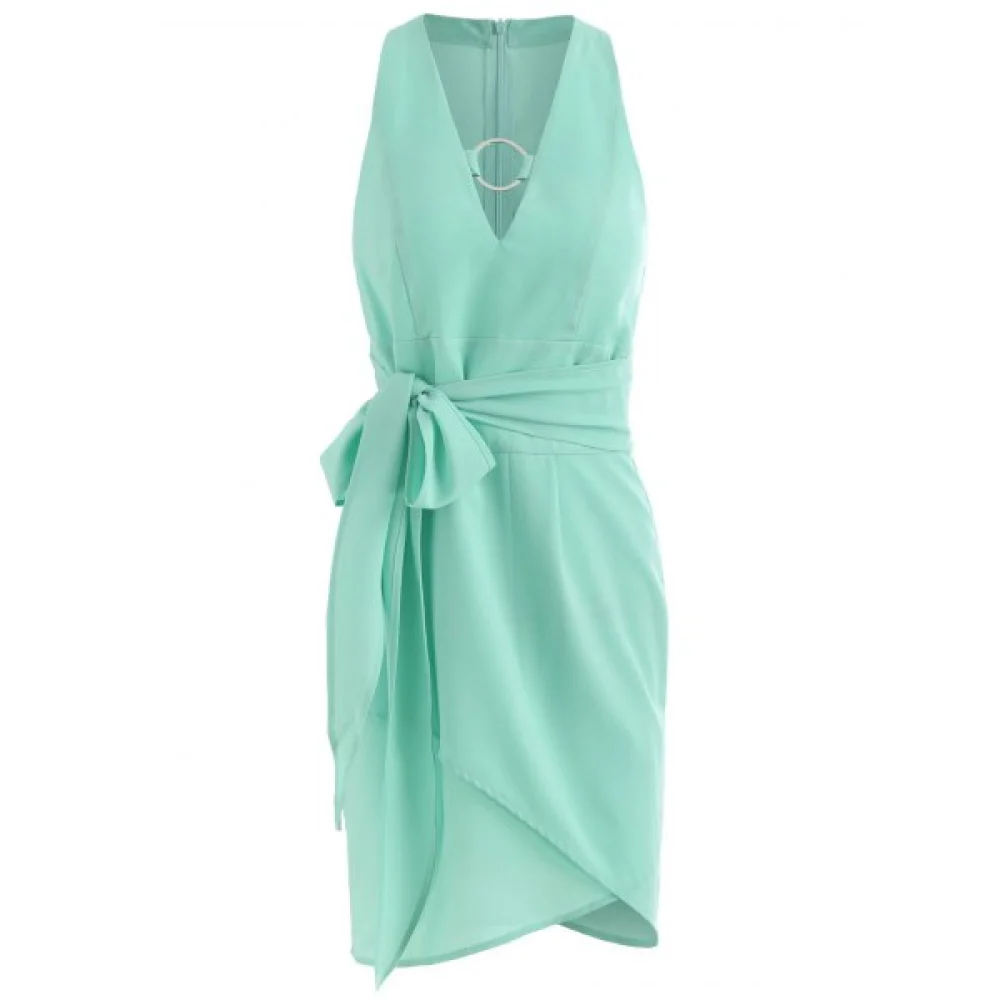 About Low Cut leeveless Chiffon Dress - Aquamarine Fansmadedirect