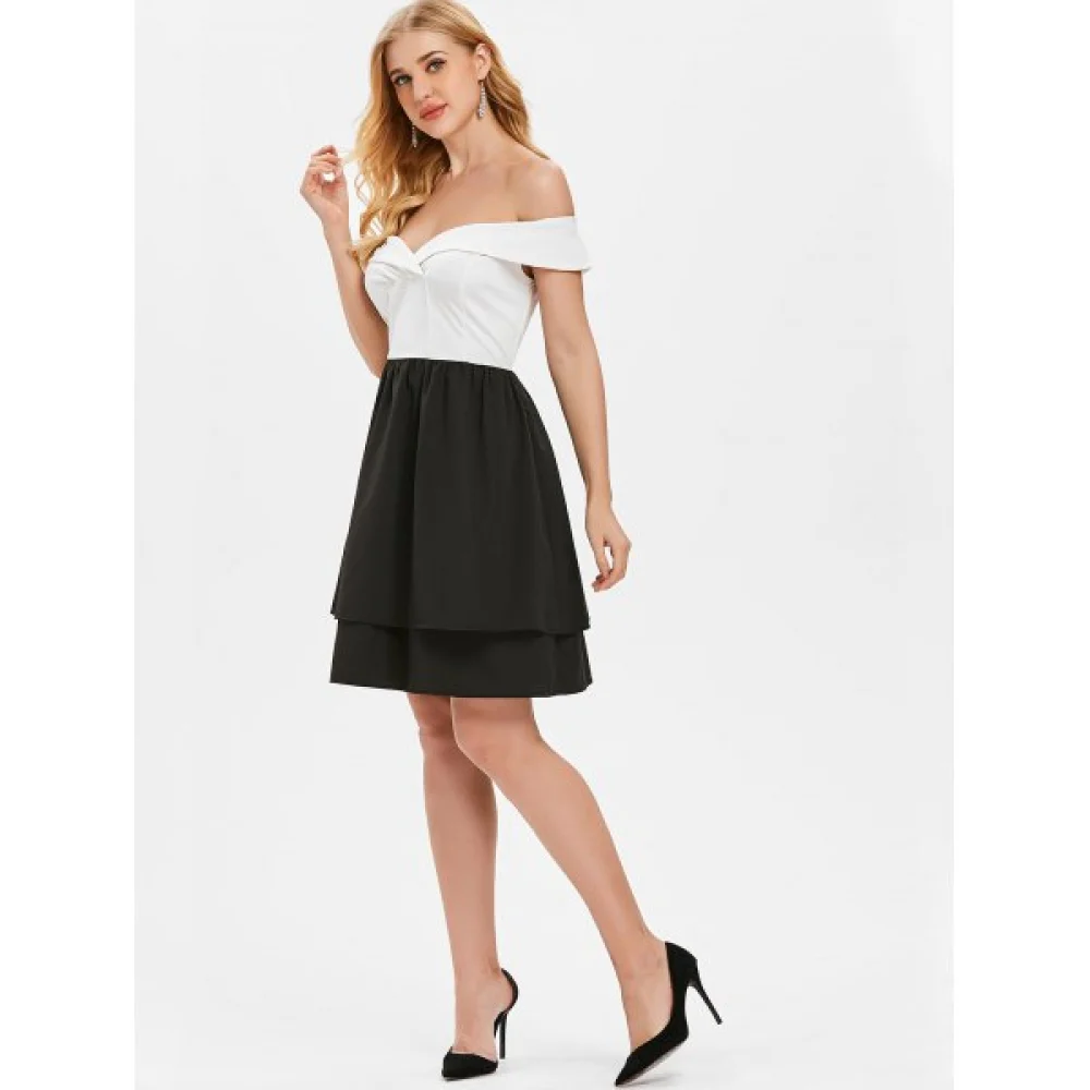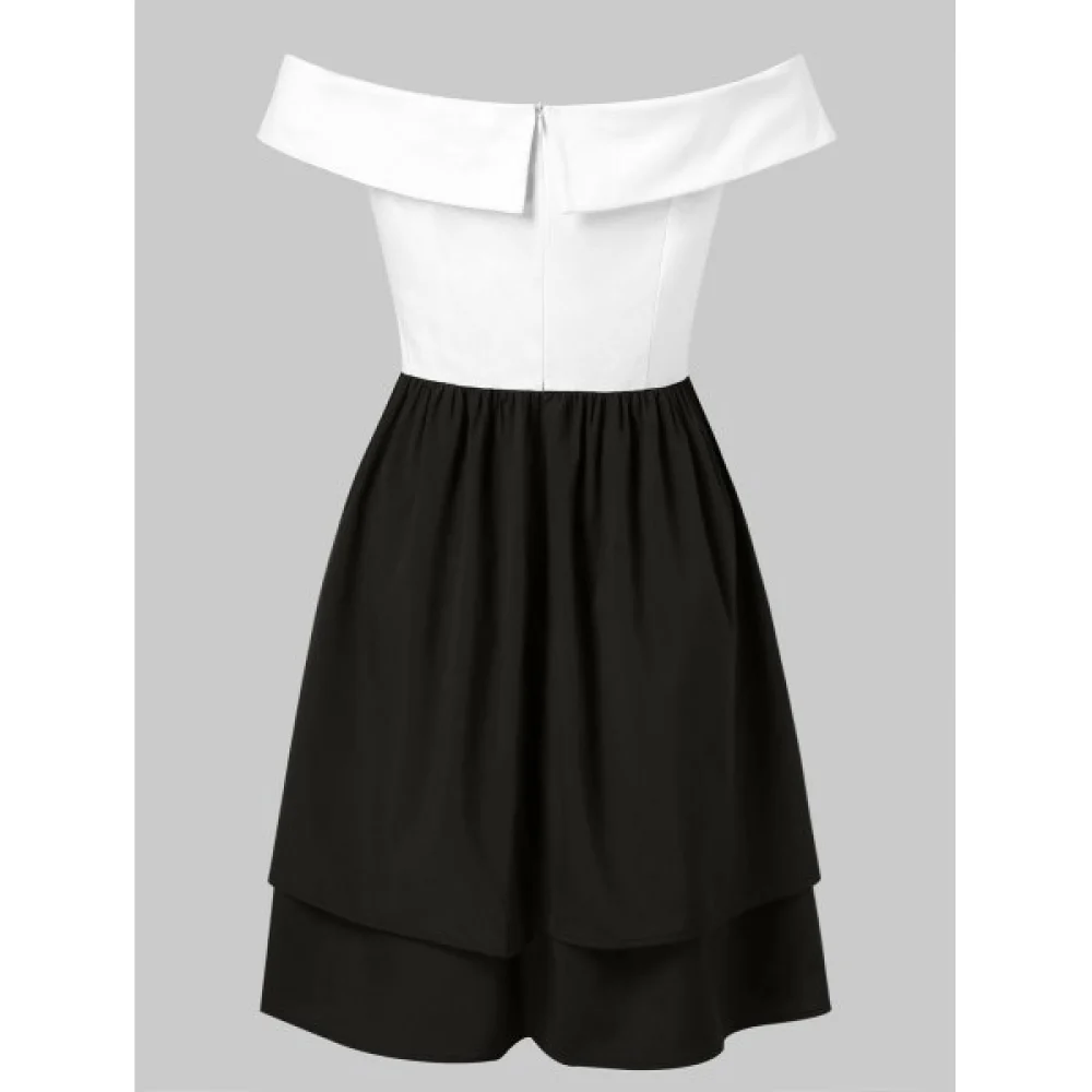 About Off Shoulder Color Block High Waist Dress - White Fansmadedirect