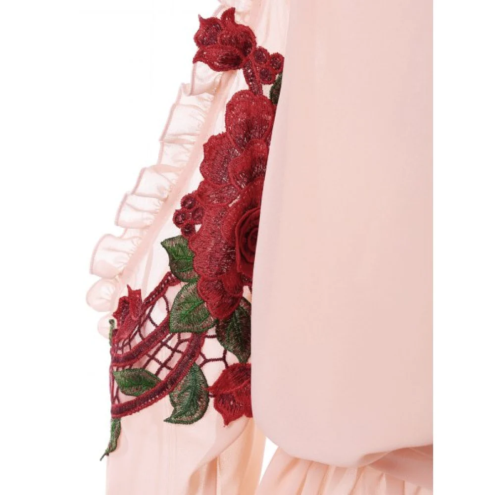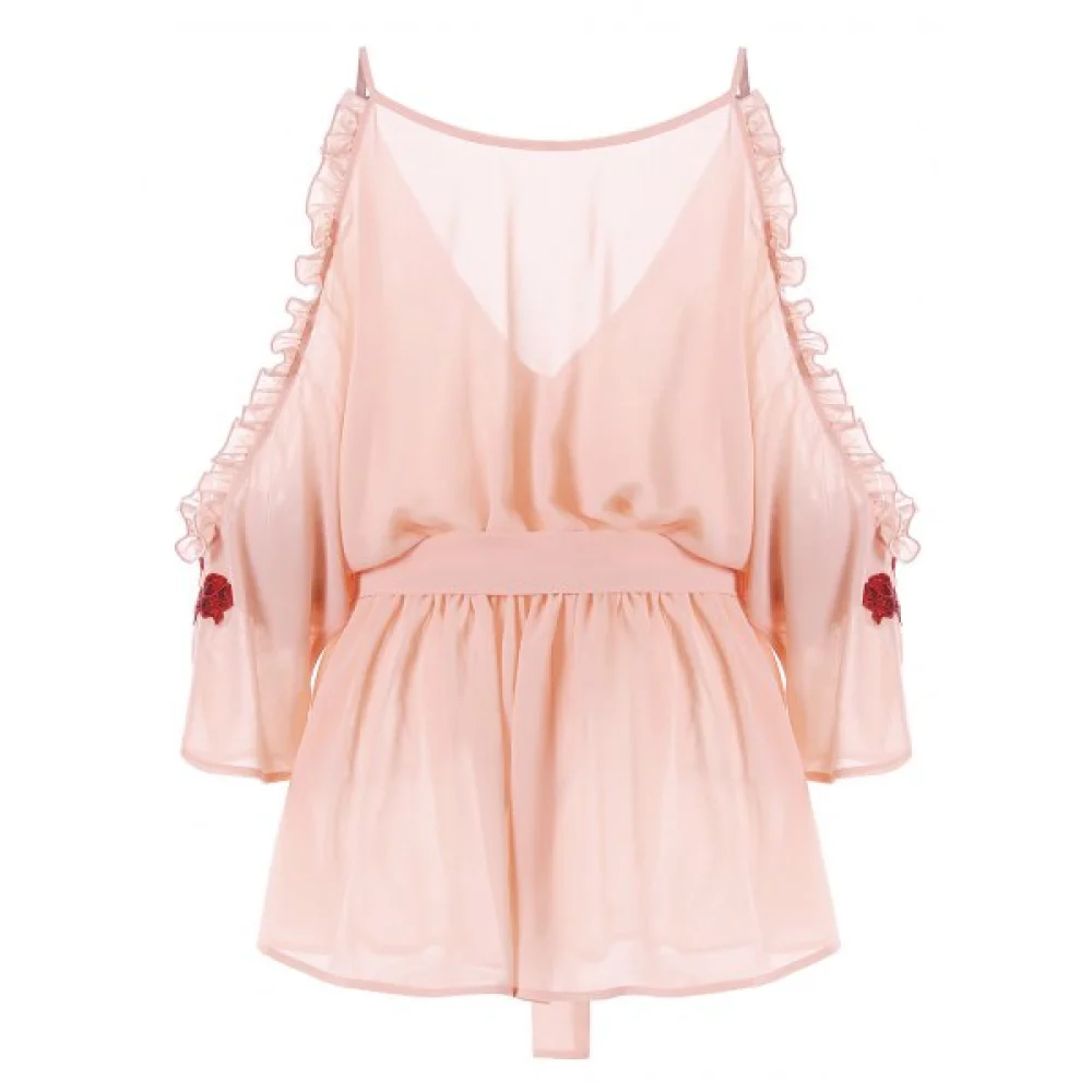 About Open Shoulder Embroidery Surplice Blouse - ight Pink Fansmadedirect
