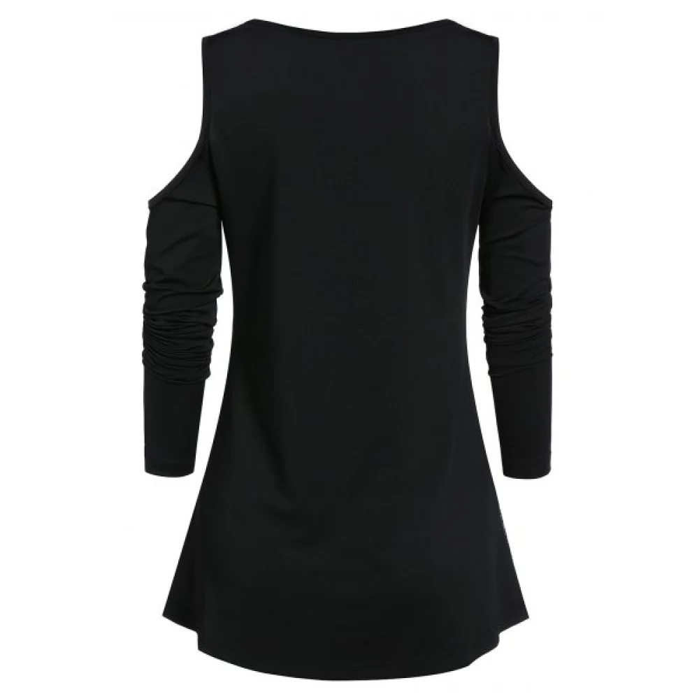 About Open Shoulder Rose Print Tunic T Shirt - Black Fansmadedirect