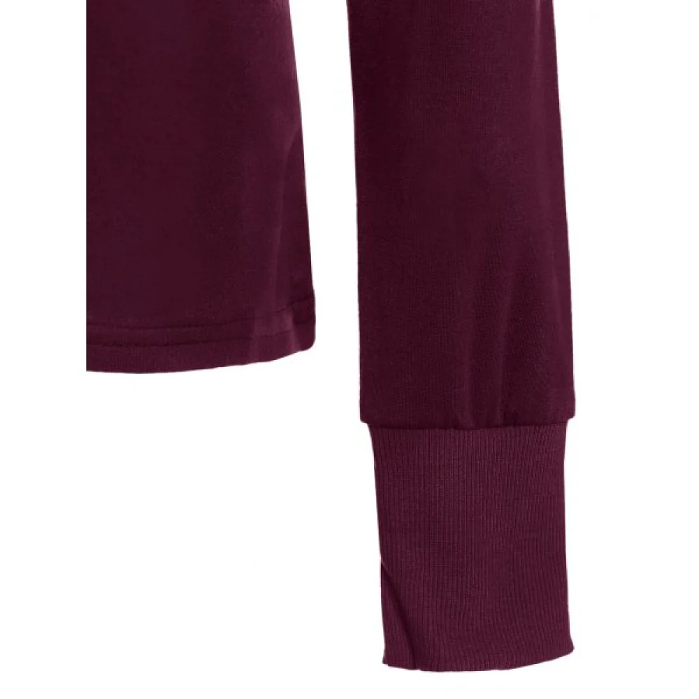 Petal Hem Drawstring Embroidered weatshirt - Wine Red Fansmadedirect