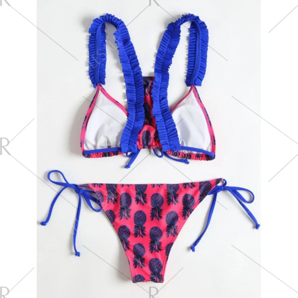 About Pineapple Print Frilled Trim Bikini - Rose Red Fansmadedirect