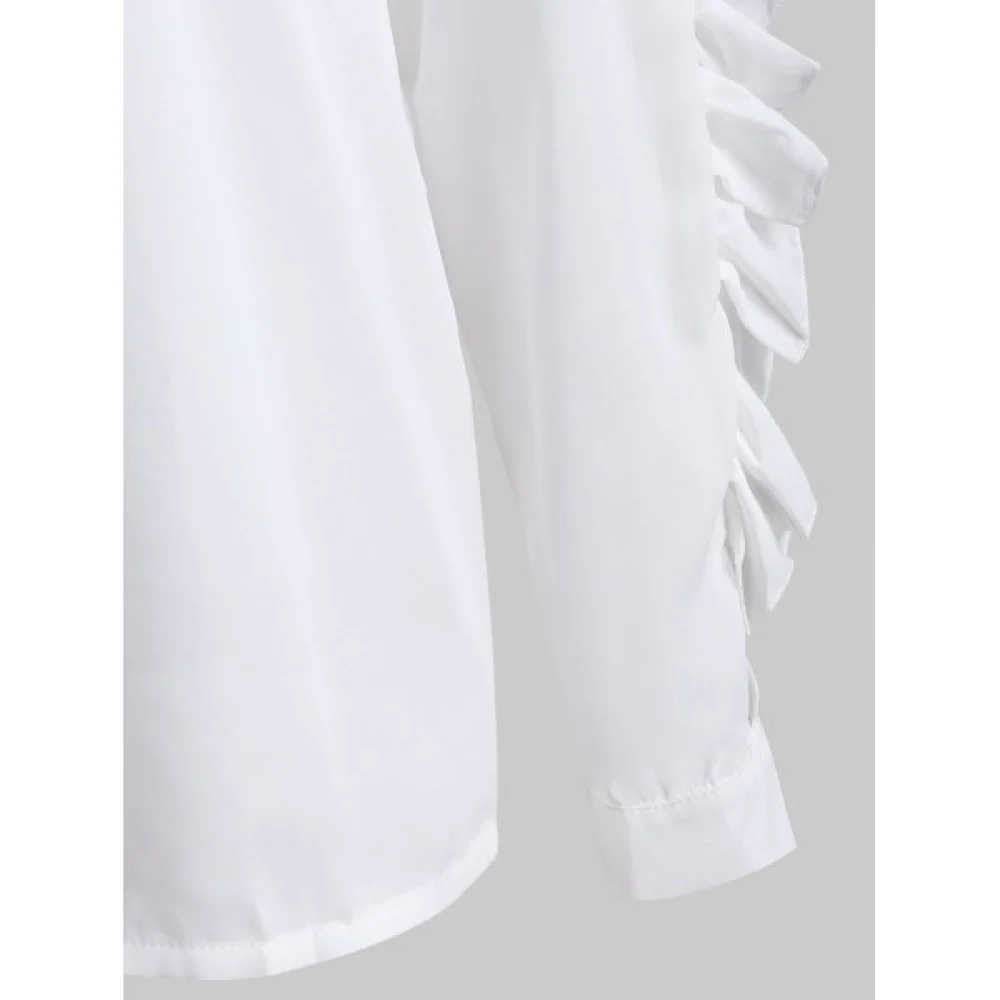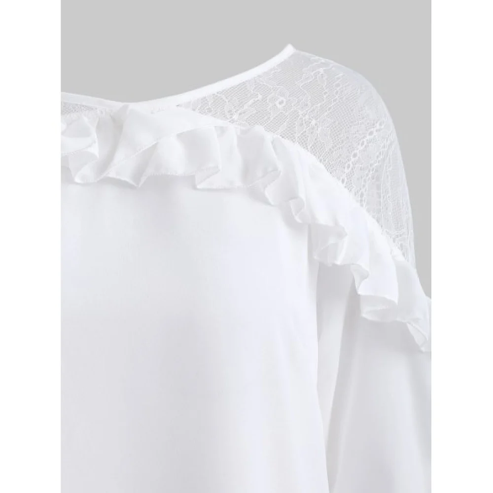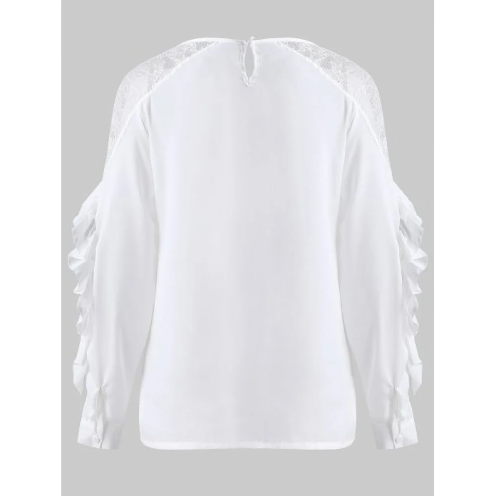 About Plain Lace Panel Lettuce Trim Blouse - White Fansmadedirect
