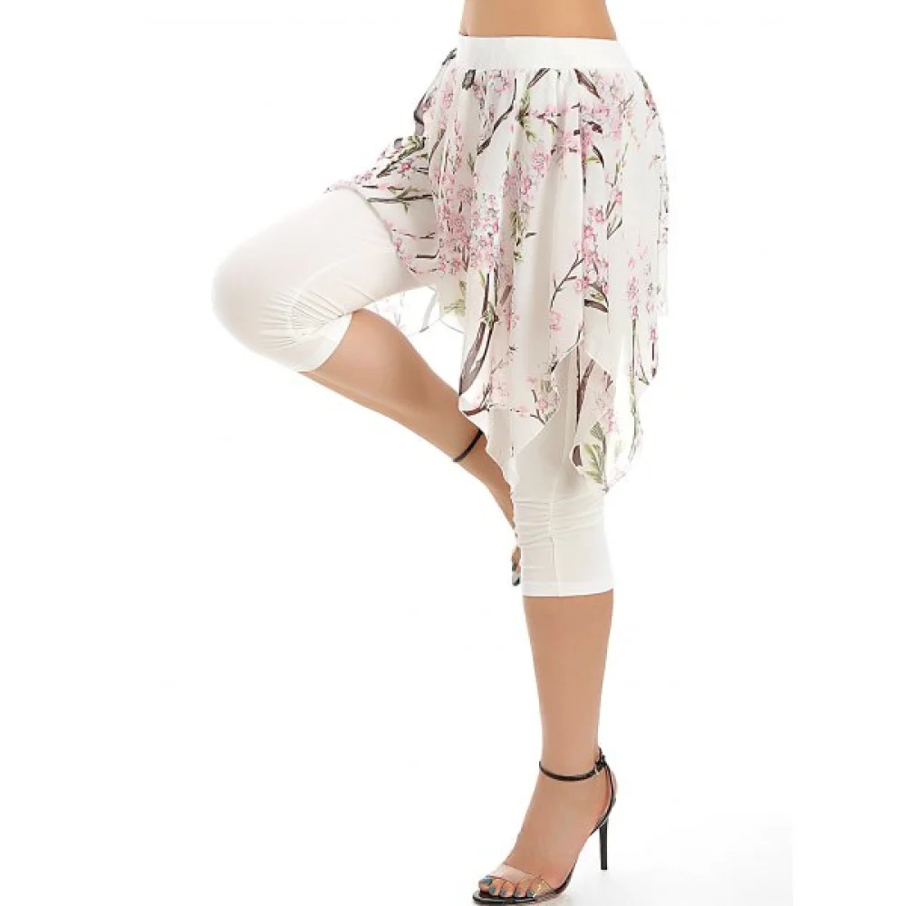 About Print Layered Ruched Cropped Pants - White Fansmadedirect