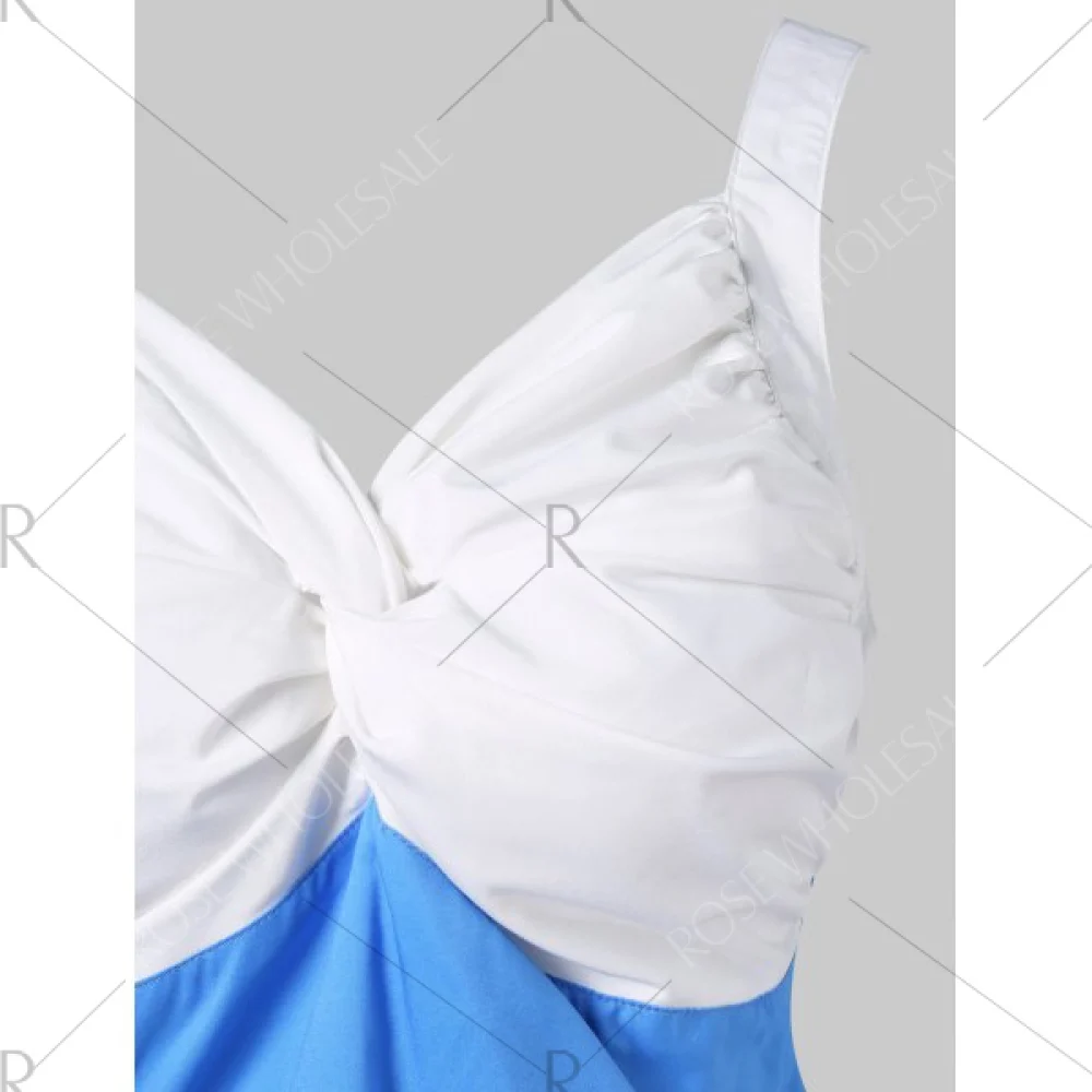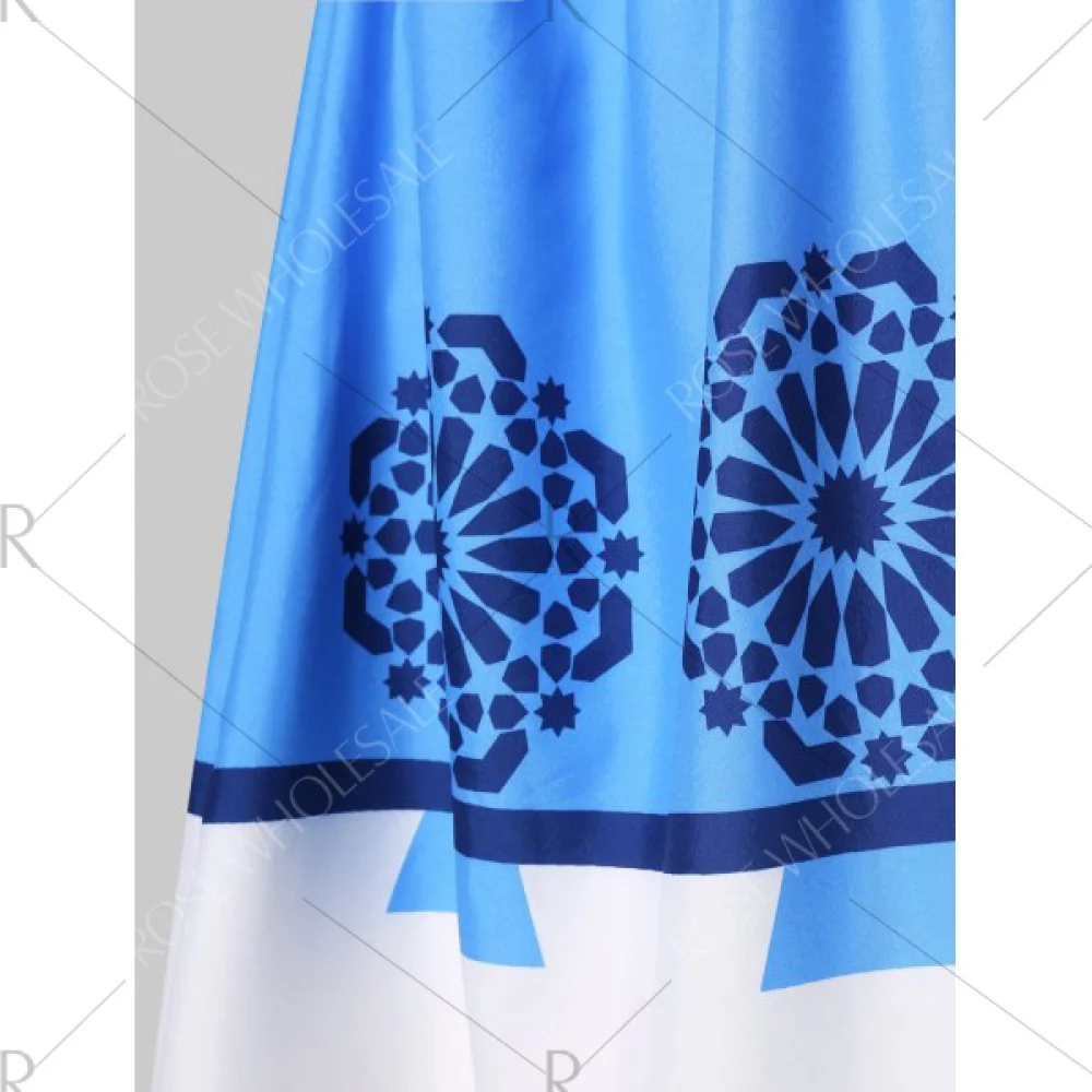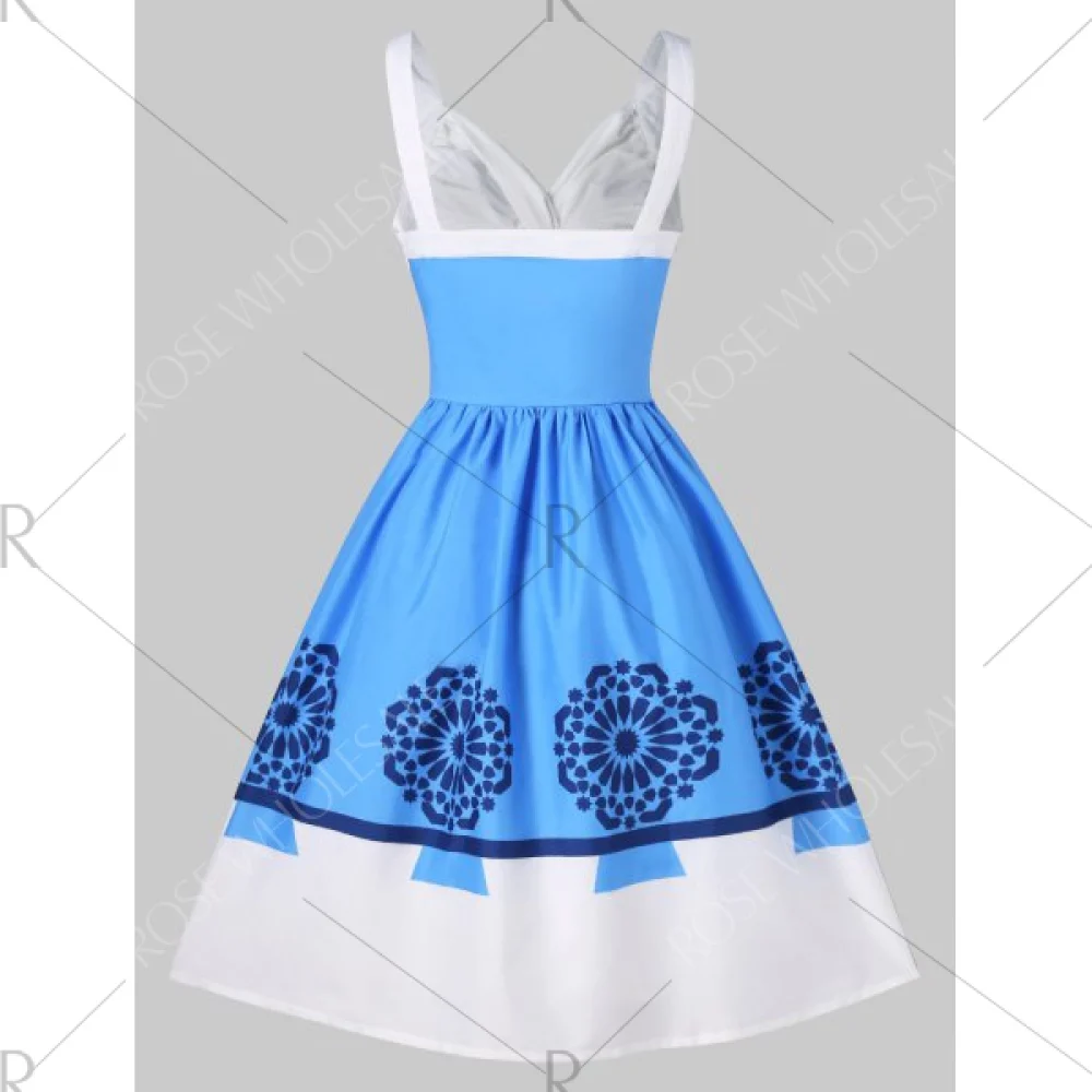 About Print Ruched 50s Pin Up Dress - Deep Sky Blue Fansmadedirect
