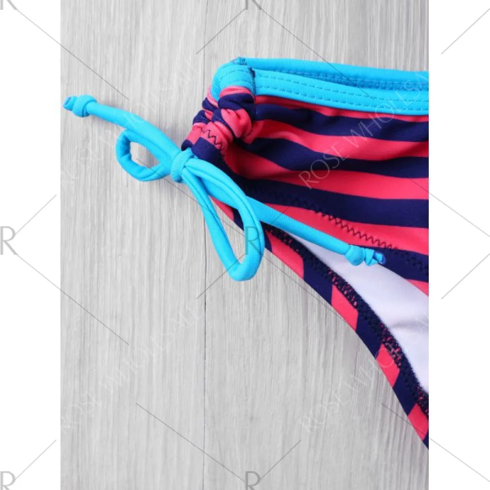 This simple stripe bikini set is divided into adjustable halter neckline bra which looks like a bow-tie and lace-up side briefs.