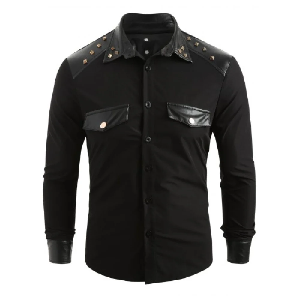 About Rivet Panel Long Sleeve Shirt - Black Fansmadedirect