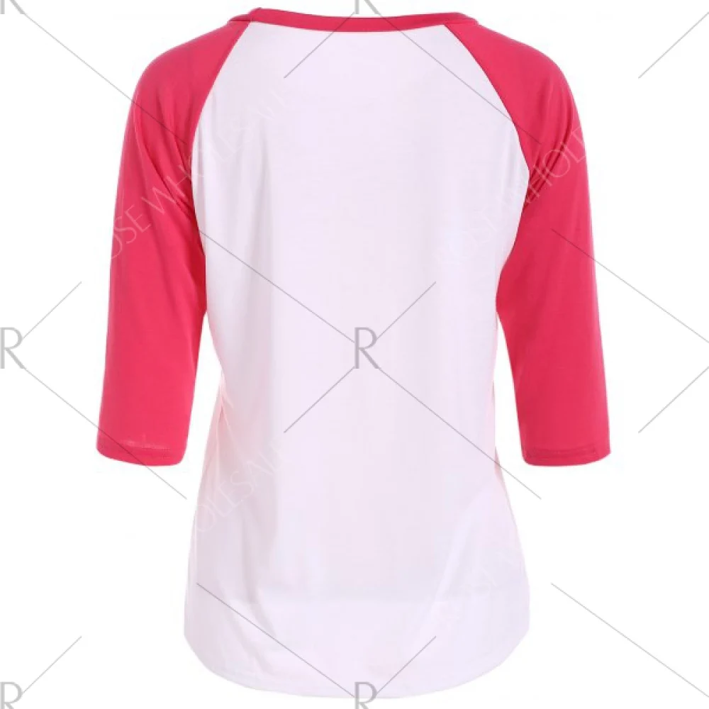 About Santa Print Raglan Sleeve Christmas Tee - Red Fansmadedirect