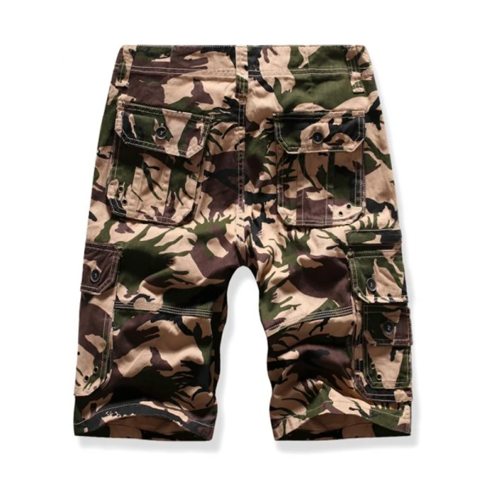 About Side Flap Pocket Camouflage Print Cargo Shorts - Khaki Fansmadedirect