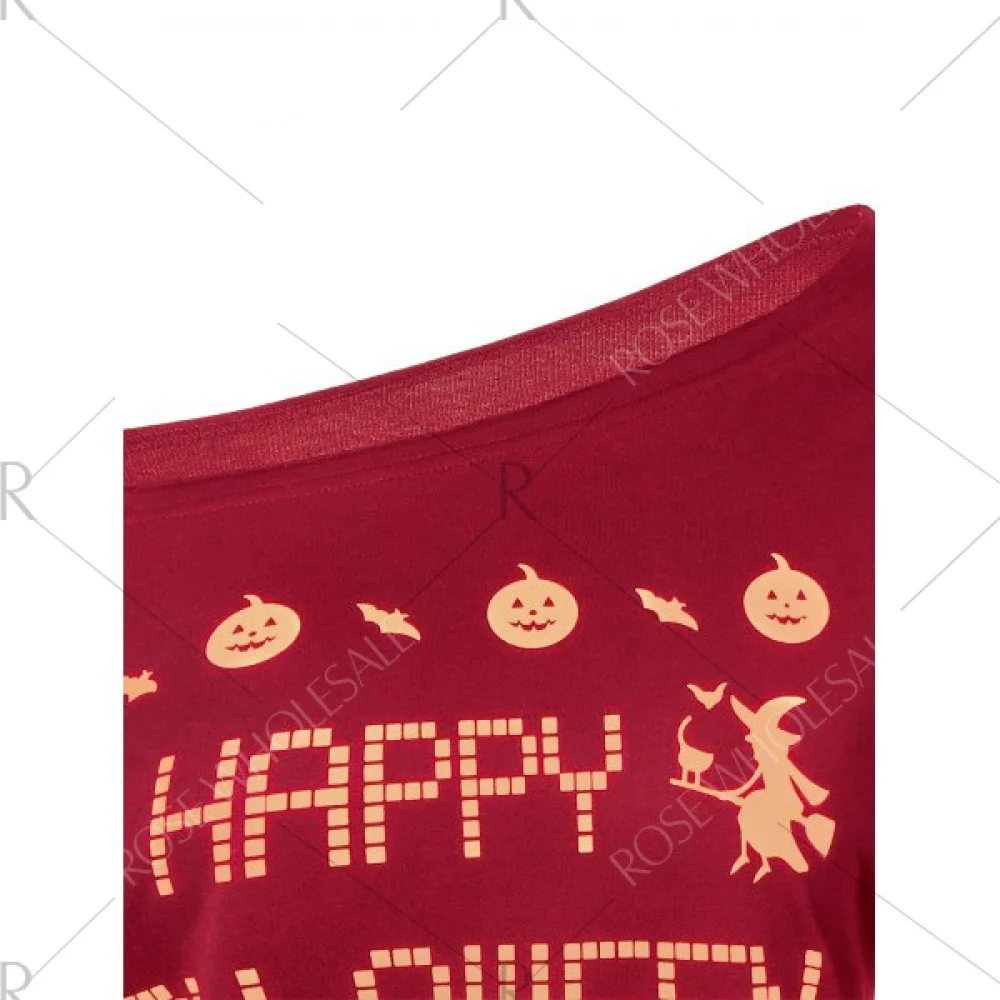 About Skew Neck Witches Print Halloween Sweatshirt - Red Fansmadedirect