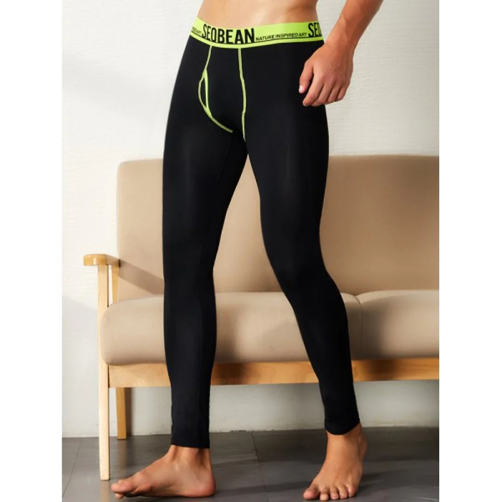 Solid Color U Pouch Design Tight Long Johns - Black Fansmadedirect
