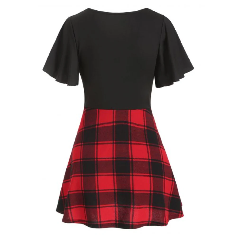About Square Neck Plaid Panel Tunic T Shirt - Black Fansmadedirect