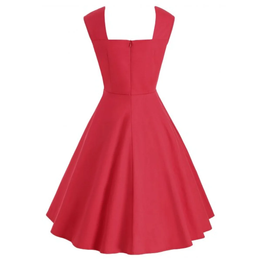About Square Neck Ruched Flare Dress - Red Fansmadedirect