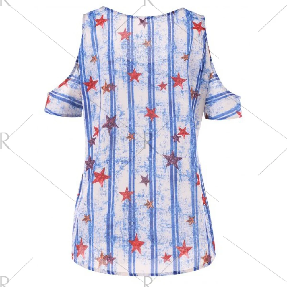 About Stars and Stripes Open Shoulder T-shirt - White Fansmadedirect