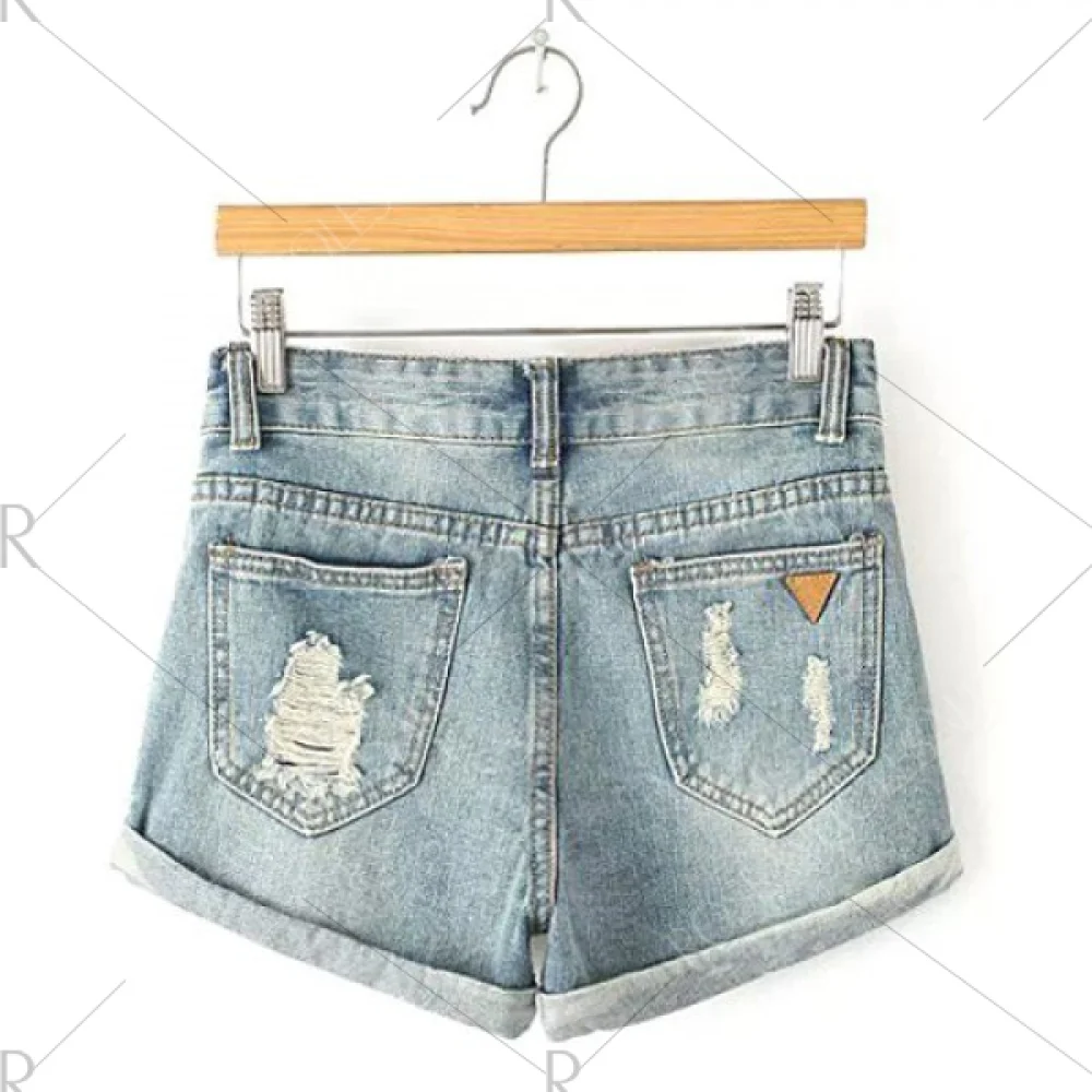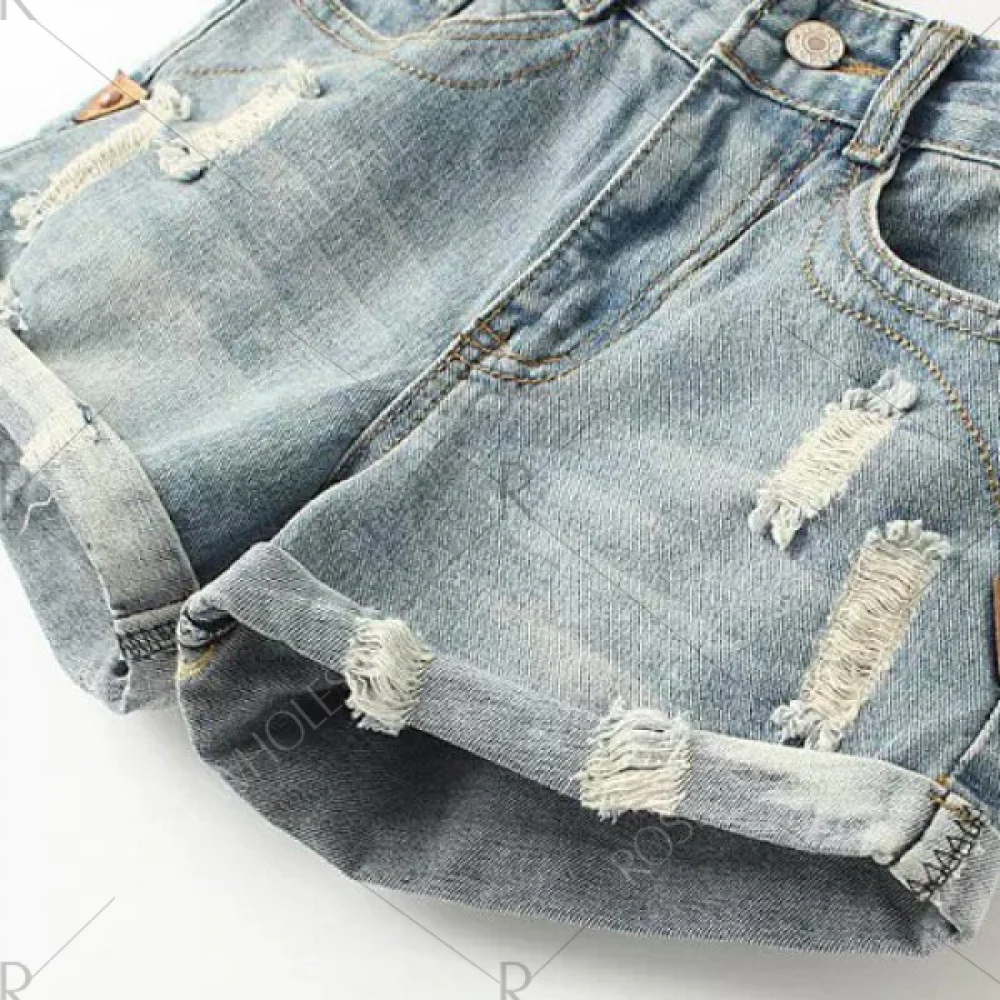 About Stylish Mid-Waisted Frayed Bleach Wash Denim Women's Shorts - ight Blue Fansmadedirect