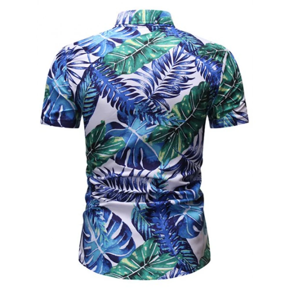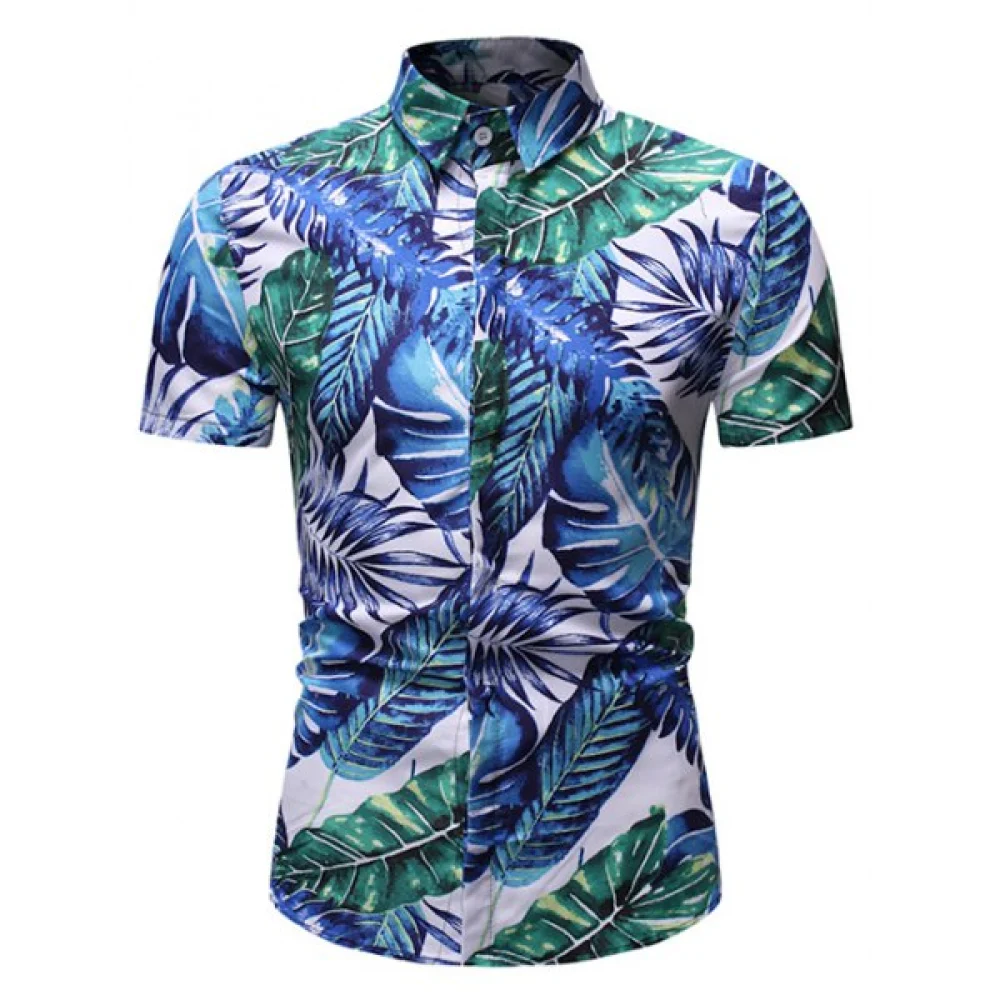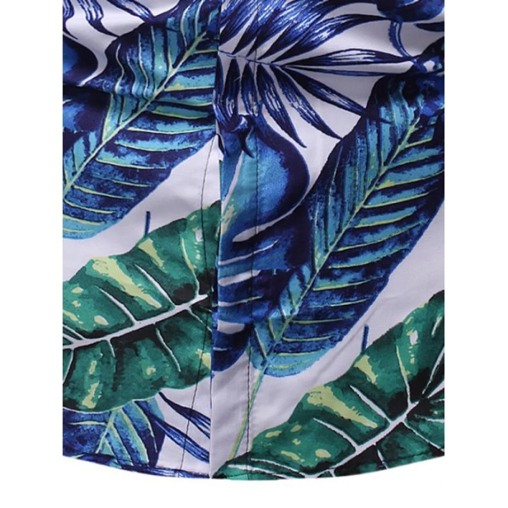 About Tropical Leaf Print Button Up Short Sleeve Shirt - Fansmadedirect