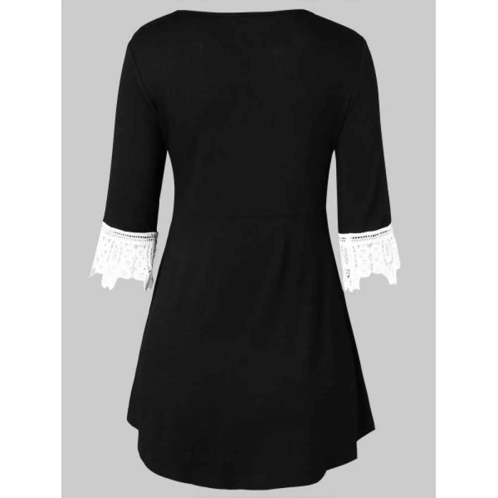 About Two Tone Applique Draped Blouse - Black Fansmadedirect