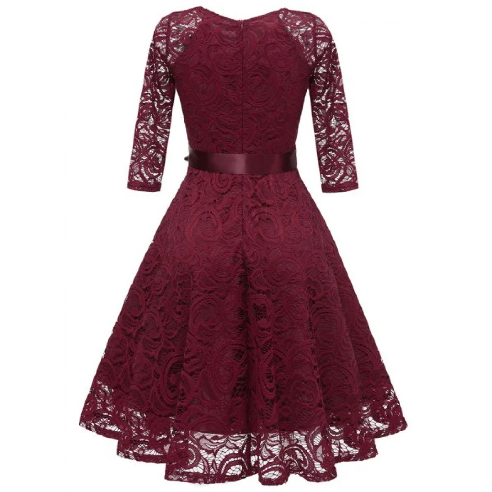 About V Neck Bow Belted A ine Dress - Red Wine Fansmadedirect
