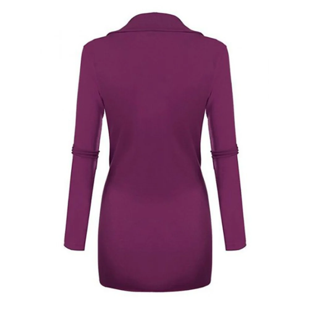 About V Neck Knotted Solid Long Sleeves Tee - Purple Fansmadedirect
