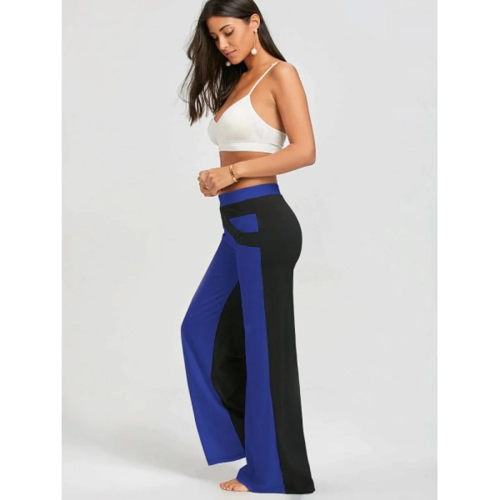 About Wide Leg Pants with Color Block - Blue Fansmadedirect