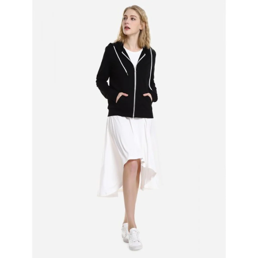 About ZAN.STYE Contrast Drawstring Zip Up Fleece Hoodie - Black Fansmadedirect