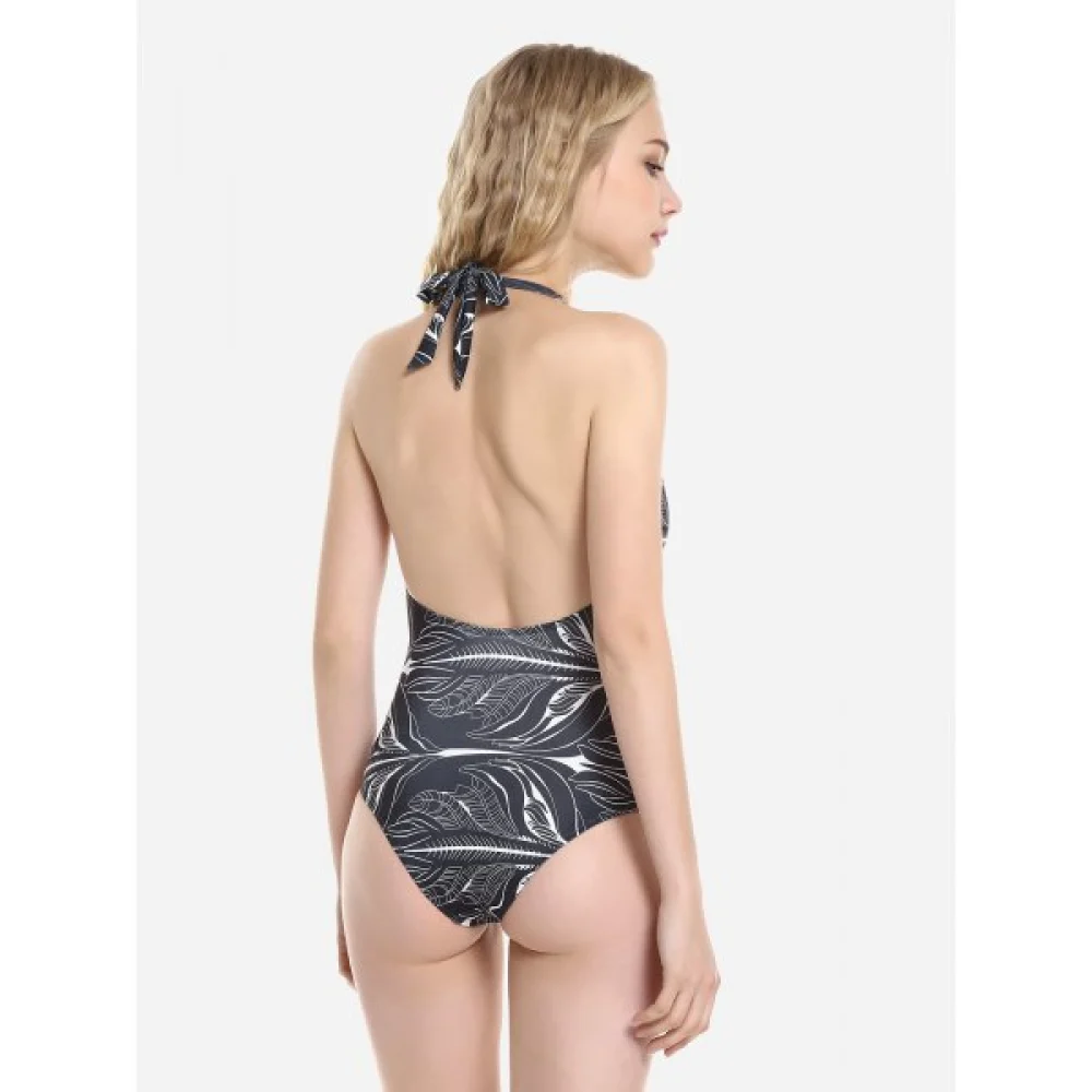 About ZAN.STYE Self Tie Halter Neck One-Piece Swimsuit - Black And White Fansmadedirect