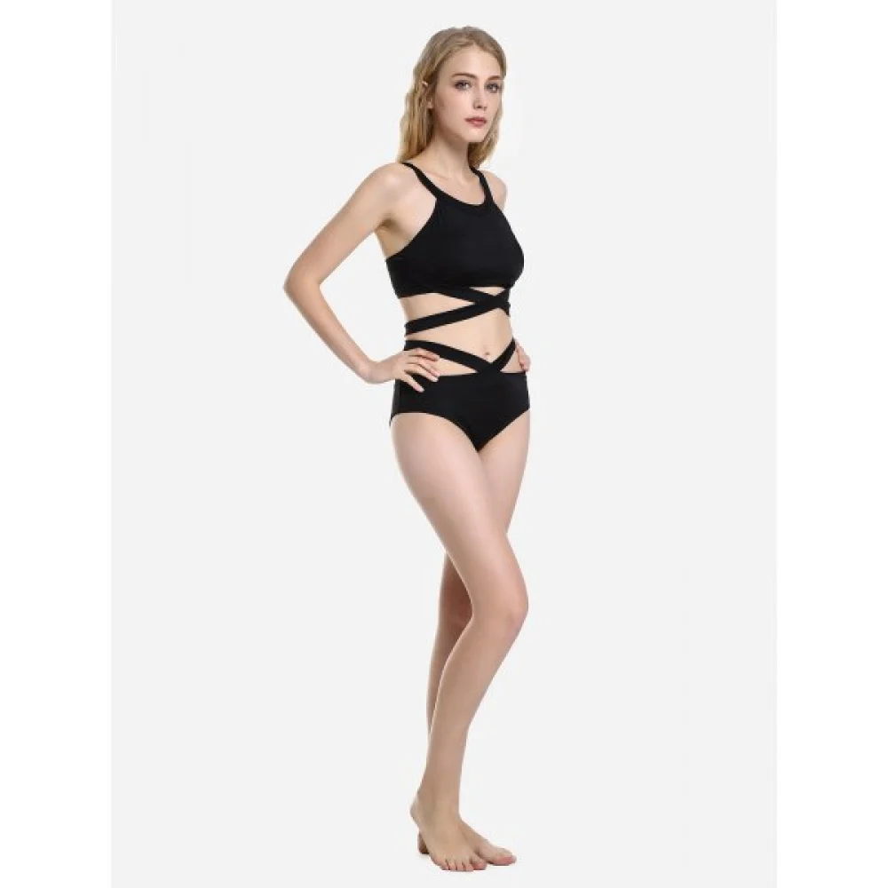 About ZAN.STYLE Cross Wrap Halter Bikini Set - Black Fansmadedirect