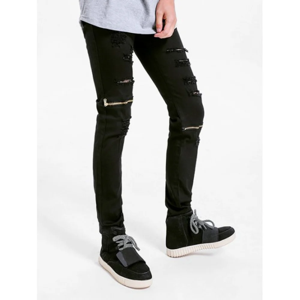 About Zipper Embellished Skinny Ripped Jeans - Black Fansmadedirect